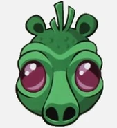 Es un cerdo mediano de color verde pantano, tiene ojos grandes y rojos, su nariz es alargada y esta lleno de arrugas y manchas.