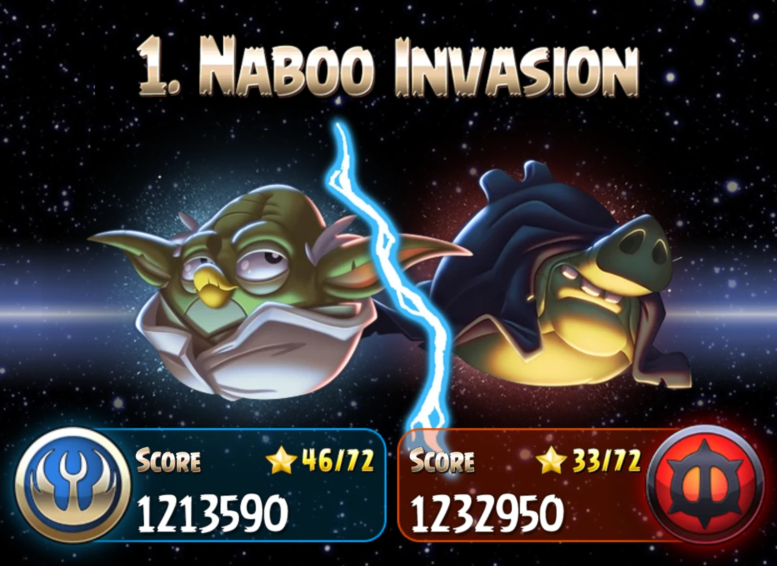 Naboo Invasion (Invasión de Naboo), es el primer episodio de Angry Birds Star Wars II. Presenta el primer acto del Episodio I: La Amenaza Fantasma y se desarrolla en ubicaciones cercanas. La nave nodriza de la Federación de Comercio y los alrededores de Theed, la capital del planeta Naboo.