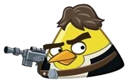Han Solo - Jeden z głównych bohaterów Angry Birds Star Wars. Pierwszy raz pojawił się na Tatooine i prawdopodobnie przyleciał tam w interesach. Jego odpowiednik to Chuck z Angry Birds Classic. Występuje również w Angry Birds Star Wars II, gdzie możemy grać nim lub jego zamrożoną wersją.