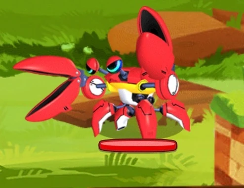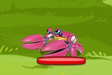 Является небольшим механическим крабом розоватого оттенка, имеет собственные клешни, можно увидеть торчащие провода.