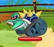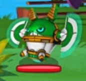 Робот, окрашенный в фиолетовый цвет и имеющий два диска, которые делают врага похожим на волчок. Атака: зарядка в течение 2-х ходов. Наносит 2 средних по мощи удара всем врагам. Усиление: усиливает атаку всех союзников на 30%. Действует 3 хода.