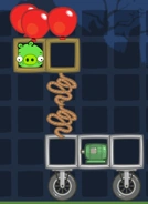 - Колеса. В большинстве уровней транспорт должен ехать по земле, соответственно, колеса на таких уровнях необходимы. По аналогии с блоками, бывают деревянными и железными. Также встречается маленькое колесо, которое обычно используется при постройке самолетов. Некоторые колеса ускоряются с помощью моторов. Также существуют колеса с присосками, которые прицепляются к поверхностям, и позволяют транспортному средству ехать вертикально или даже «вниз головой».