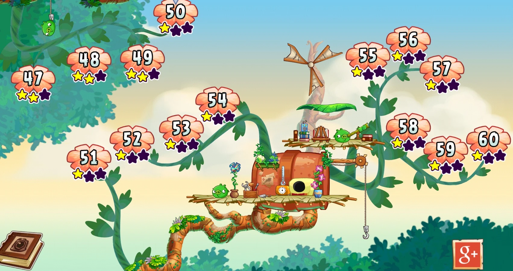 Уровни в этой локации сложнее уровней предыдущих локаций, однако, в целом, их всё-таки не так уж сложно пройти. Многие строения адаптированы под способность Далии (телепортация в указанную точку), и поэтому стоят по другую сторону стволов деревьев так, что другим птицам невозможно было бы их уничтожить. Для этой локации характерны различные виды книг, которые играют роль мелких объектов; также в качестве подобного рода объектов встречаются горшки с цветами, сапоги и некоторые другие предметы.