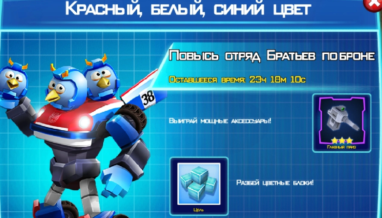 Красный, белый, синий цвет — одно из обычных событий игры Angry Birds Transformers.