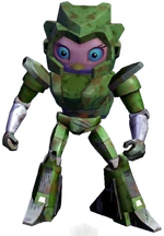 Представляет собой покоцанного грязного трансформера тёмно-зелёного окраса с вкраплениями металлика (в частности, на запястьях и коленных суставах), а также с поцарапаными ярко-серыми элементами на ступнях, кистях и плечах. Персонаж имеет способность выстреливать по три кислотных шара за атаку, хорошо справляясь со льдом, деревом и многими врагами. Также может трансформироваться в кибертронское летательное транспортное средство.