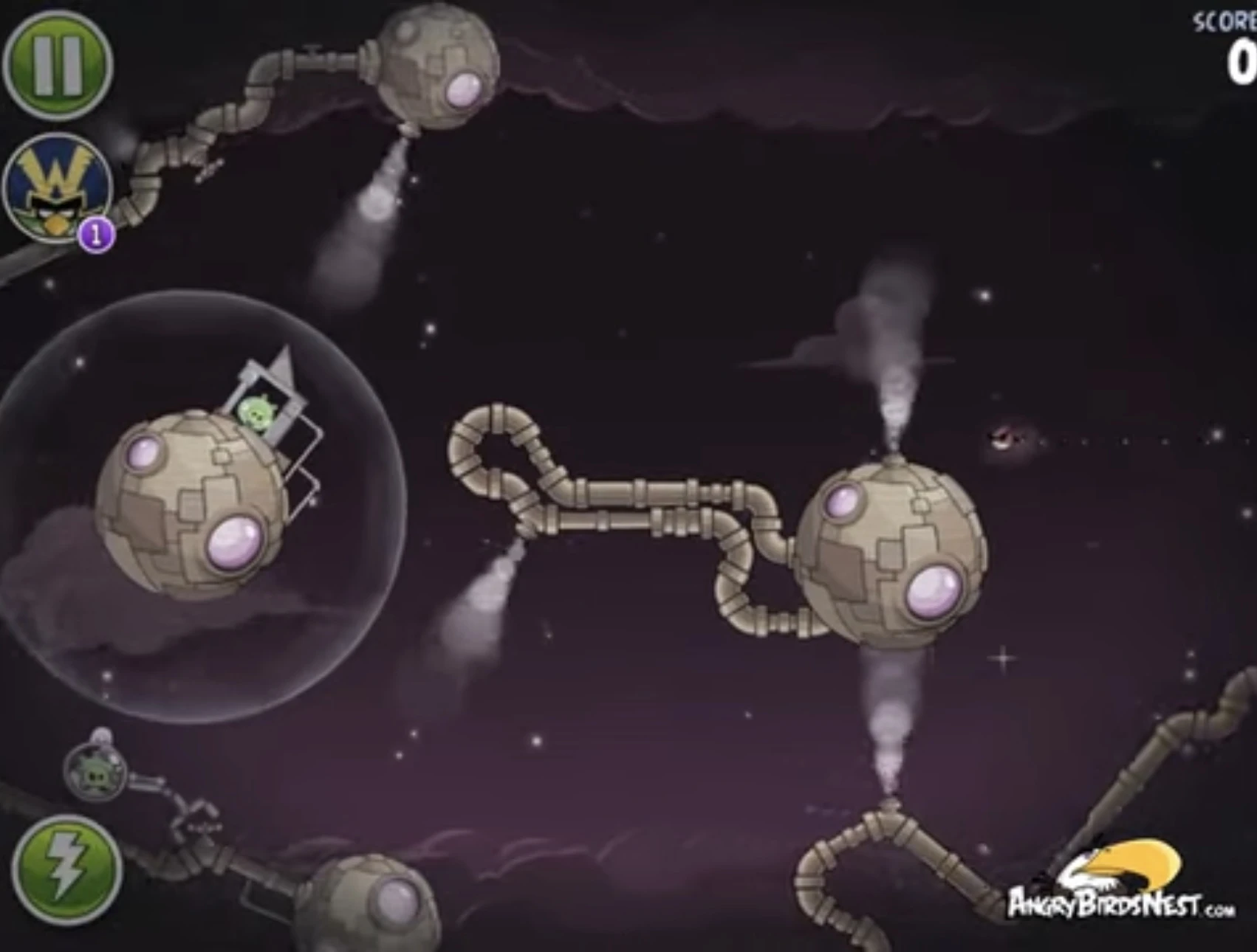 Запустите первого Реда в пар на ближней медной планете, чтобы лопнуть Гектора Порко. Второго Реда запустите в пар под этой же планетой, чтобы добить свина-миньона.