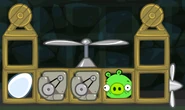 Чтобы получить три звезды на этом уровне, надо изобрести всего один свиномобиль. Чтобы достичь финиша включайте и выключайте большой пропеллер. Транспорт получится довольно крепкий, скорее всего птицам не удастся его повредить. Главная задача — не дать им попасть в пропеллер.
