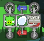 Для получения трёх звёзд нужно создать два свиномобиля. Сначала попытайтесь уложиться в отведённое время. Включите мотор и активируйте синюю ракету. Когда свиномобиль доедет до верха, вы увидите кочку. Сначала притормозите, потом опять включите мотор (прямо перед кочкой). После этого свиномобиль должен перевернуться в воздухе, колеса, присоединяемые к мотору, должны оказаться сверху. Когда транспорт будет падать вниз, активируйте ракету. Также активируйте колёса, но ненадолго, а то свиномобиль перевернётся. А когда транспорт окажется в туннеле, включайте мотор и неситесь к финишу. Во второй попытке делайте всё тоже самое, только нужно доехать до коробки со звездой.