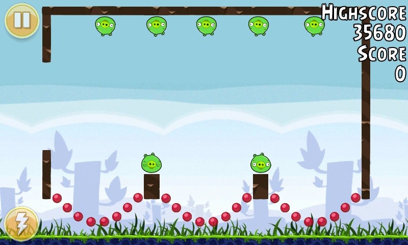 Опять надо запускать синих птиц так, чтобы мячики попадали в свиней и убивали их.