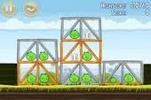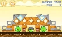 С помощью Реда (и,если надо,Синих) уничтожьте мешающую стеклянную конструкцию. Путь для Орла свободен. Запускайте его под основное строение. Он с лёгкостью всё уничтожит.