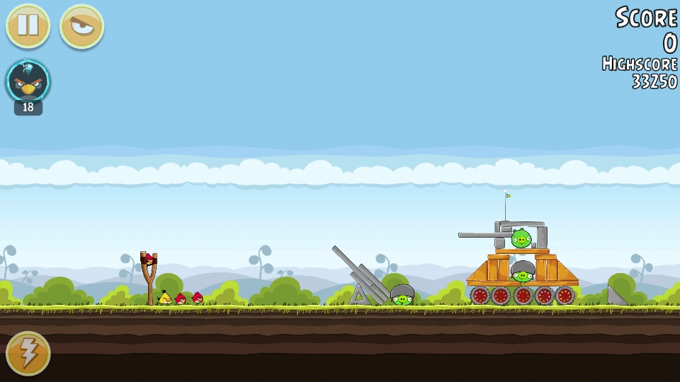 Сначала запустите 1-2 птицы в правые строения, чтобы разрушить их. Затем запустите орла между «машинкой» и «замком». Перо ваше.