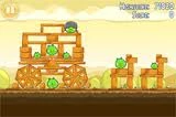 Сначала подорвите желтыми птицами динамит под правой постройкой. Когда она разрушится, запустите банку с сардинами в блоки, оставшиеся от левого строения.