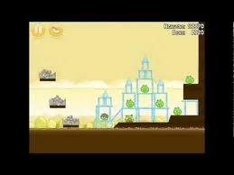 На этом уровне всё очень просто. Сначала можно попробовать разрушить птицами правое строение и запустить Орла в левое. Можно сразу же запустить банку так, чтобы она попала в щель между строениями. 100 % ваши.