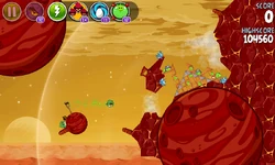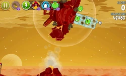 Для прохождение этого уровня существует сразу два способа. Первый: запустите банку с сардинами в в самый ближний верхний газовый крейтер, все свиньи погибнут. Второй: запустите могучего орла в нижнюю часть поля притяжения.