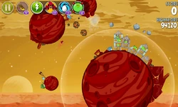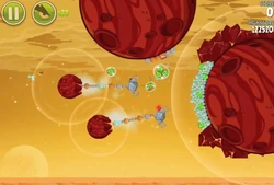 Запустите банку с сардинами в орбиту планеты так, чтобы она попала в «спутник» со свиньями. Оставшихся поросят добейте следующей птицей. Если у вас не получилось всё уничтожить — попробуйте ещё раз.