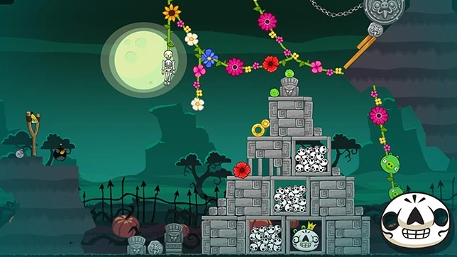 Уровень очень лёгкий. Вам нужно всего лишь Чаком разрезать верхнююб верёвку с динамитом. Динамит взорвётся и постепенно все умрут, когда будет разрушаться строение. Уровень пройден только за одну птицу.