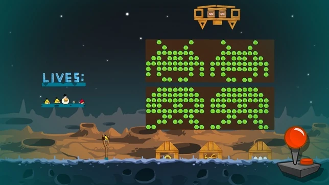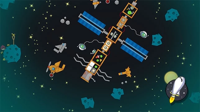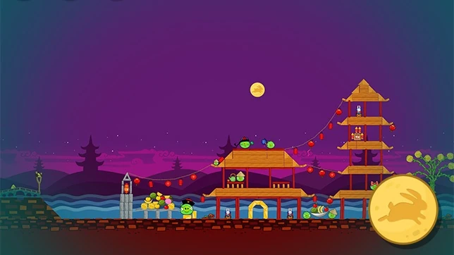 На этом уровне понадобятся все птицы. Чаком уничтожаем первое строение. Рэда стреляем во второе, Стэллой разрушаем третье и четвёртые строения. А последней птицей добиваем самую дальнюю свинью в последнем строении. Кроме этого постепенно умрёт свин в ракете, когда вы разрушите второе строение.