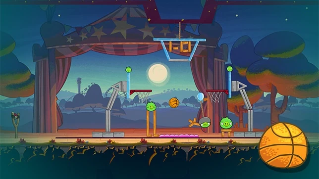 Первого Реда запустите в кусок веревочки, который удерживает «табло», на котором выведен счёт. После этого должна выжить одна или две свиньи. Запустите второго Реда в поросёнка, который держится на стеклянном блоке, находящемся над левым кольцом. Он должен убить всех оставшихся свинов. Также будет хорошо, если свинья, птица или мяч хоть раз попадут в кольцо — за это начисляются дополнительные очки.