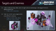 В этой игре прицеливание отличалось от классических игр. Прицеливание в этой игре было бы фиксированным и очевидным. Игрок мог выбрать птицу, скорость и время активации способности птицы, но он всегда попадал в свою цель. Это было сделано из-за упора на стратегическую часть игры, а не на навыки игрока в непосредственном запуске пернатых из рогатки.