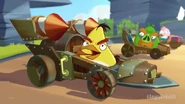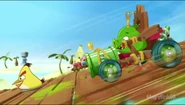 Усатый барон взял динамит и уже был готов подкинуть динамит на Чака и Стеллу, но Чак оттолкнул Усача, после чего последний врезался в постер «Angry Birds Go!» и ударился об скалу, которая повалилась вместе с ним. Проезжая через тоннель, Король проехал по потолку и обогнал Стеллу. После этого Король активировал шары, которые были встроены в его транспорт и пролетел через препятствия. Чак, разозлившись, тоже применил способность и на всех скоростях проехал трассу. Он был настолько быстрым, что лопнул все шары Короля. Но от такой скорости машина Чака разломалась, и от неё осталась только тарелка (место, на котором сидит Чак), которая проскользила вперёд к финишу, в то время, как остальные ехали за ним…