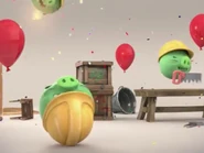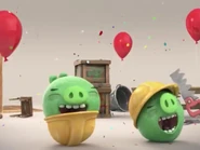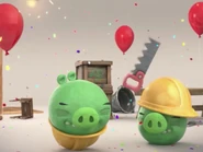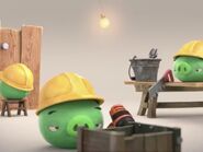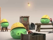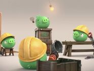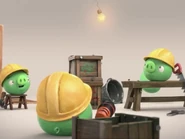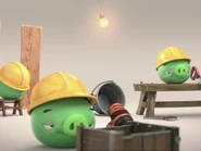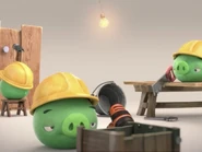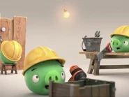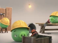 Опять гаснет свет. Свин с дрелью решает напугать товарища. Снова включается свет, и свиньи работают. Далее свет выключается еще два раза, при этом строители веселятся, качаясь на лампе и издавая разные звуки. В последний раз их веселье перебивает кашель миньона, который заменяет лампочку. Строители ждут и через несколько мгновений начинают веселиться по полной...