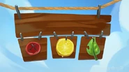 The Minion Pigs are cheering for the race to start, and Stella, Foreman Pig, and Terence are checking that all systems go, and so was Chuck, but King Pig arrives with a stylish kart called the Green Machine, then Chuck upgrades the kart really fast so he can call it the Mega-Rocket to prove that his kart is faster than King Pig's, and he teases King Pig, then the whistle sounds and the red button sign comes down, and all of them are pulling themselves further away to the Slingshot, and after they do, a yellow melon sign comes down, and King Pig and Chuck are really focusing, and the green leaf sign comes down.