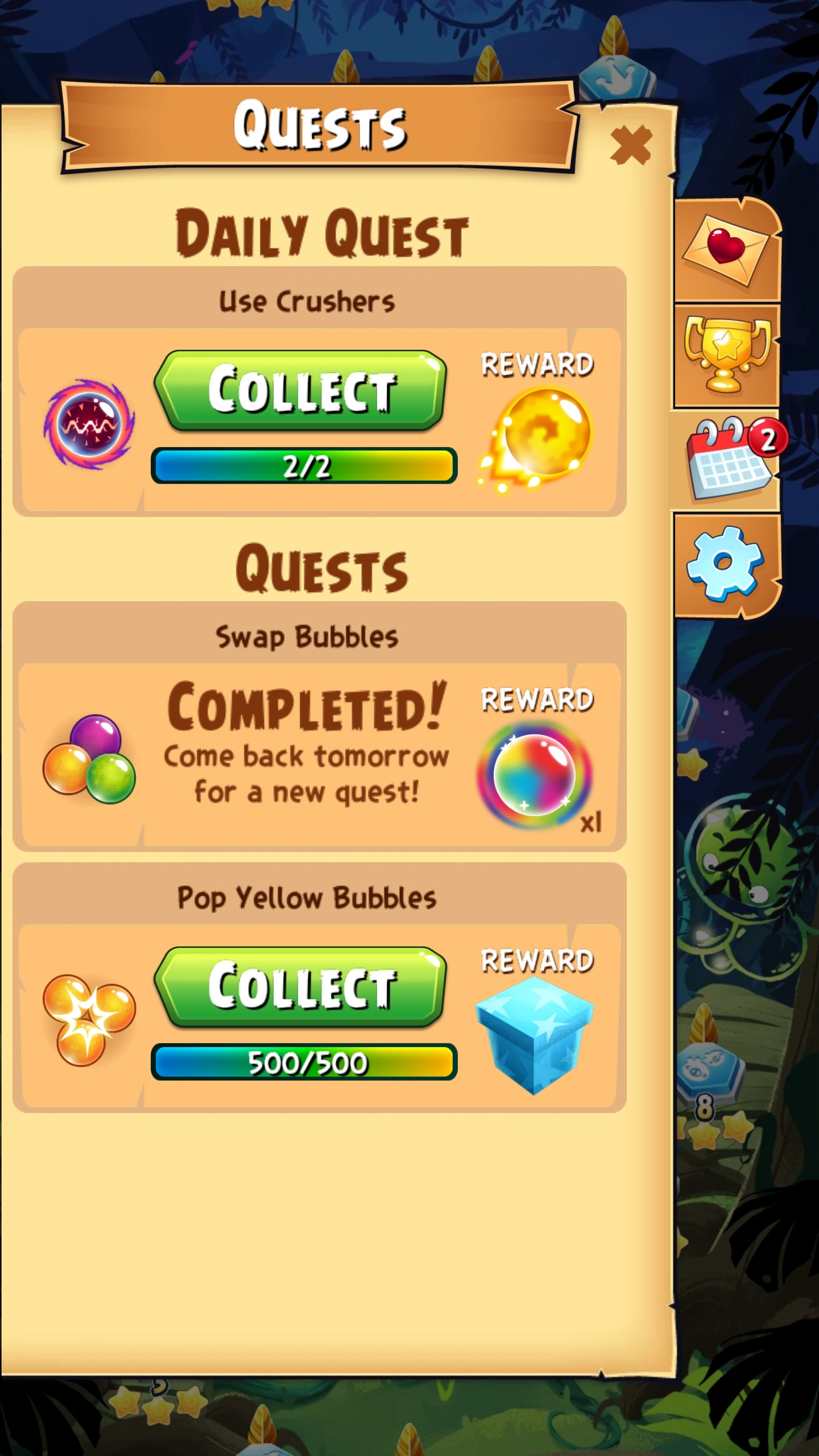 Since version 2.15, players are given 3 tasks to complete for 3 reward items such as boosters and gold. (Y denotes the number value).