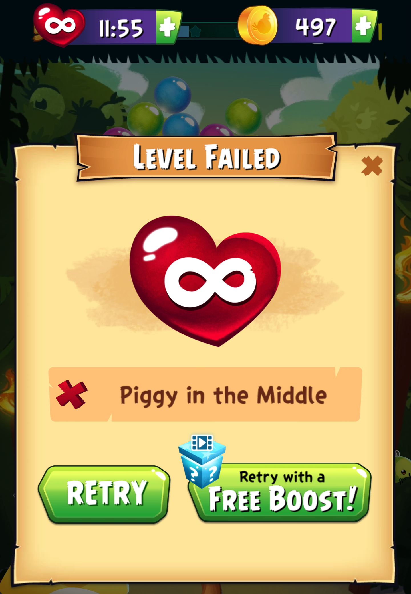 each time or to give up. When you give up, will lose one of the lives. Afterwards, you may retry or if available watch an advertisement video to earn free boost at the beginning of the next attempt. If you lost all the lives, you must get lives from friends (