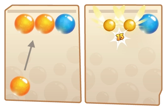 The game features the slingshot lined up in the bottom center, and the player flings the bubble to pop bubbles at the top with a combination of three or more bubbles with the same color. Each level will be given a limited number of bubbles indicated beside the slingshot known as the bubble count. Sometimes, there are some obstacles and special blocks that appear at the top along with the bubbles. This game features a common live system that starts with 5 x