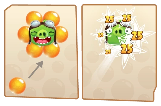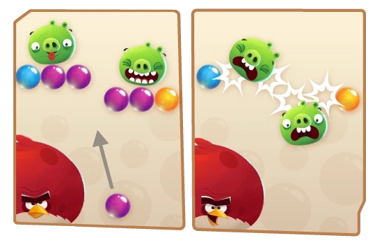 Help Red (formerly Stella) to pop bubbles and drop all the pigs to win the level! | |||