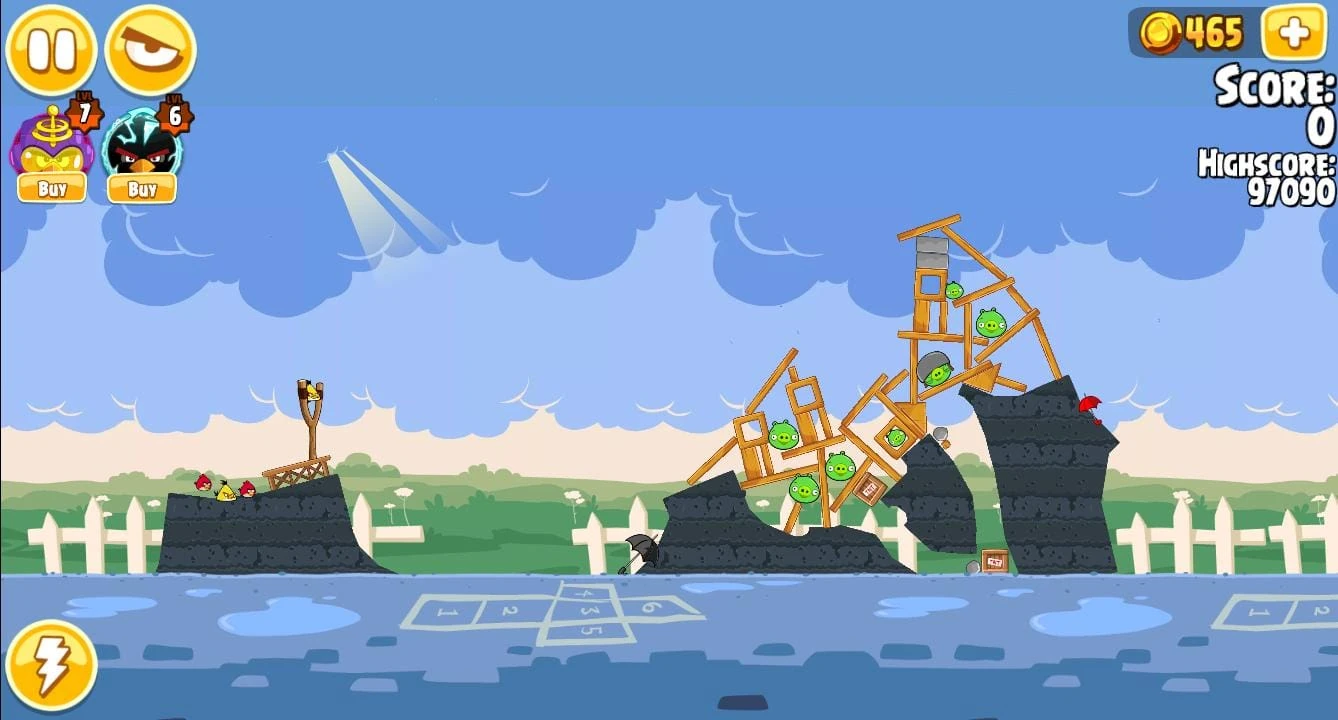 Launch Chuck straight up in the air; then, when he begins to fall slightly, accelerate him near the Corporal Pig. The TNT at the bottom of the screen will explode, forcing the rocks to destroy the structure.