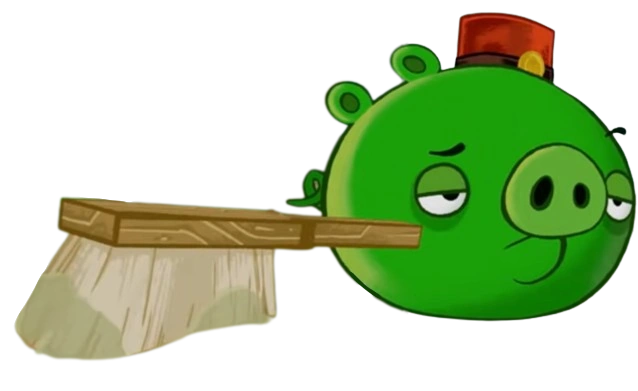 The Cleaner is a Pig who cleans up the King Pig's trash. Easily recognized by their special headdress. Has a brush and dustpan for work. Appeared in the episode Where's My Crown?.