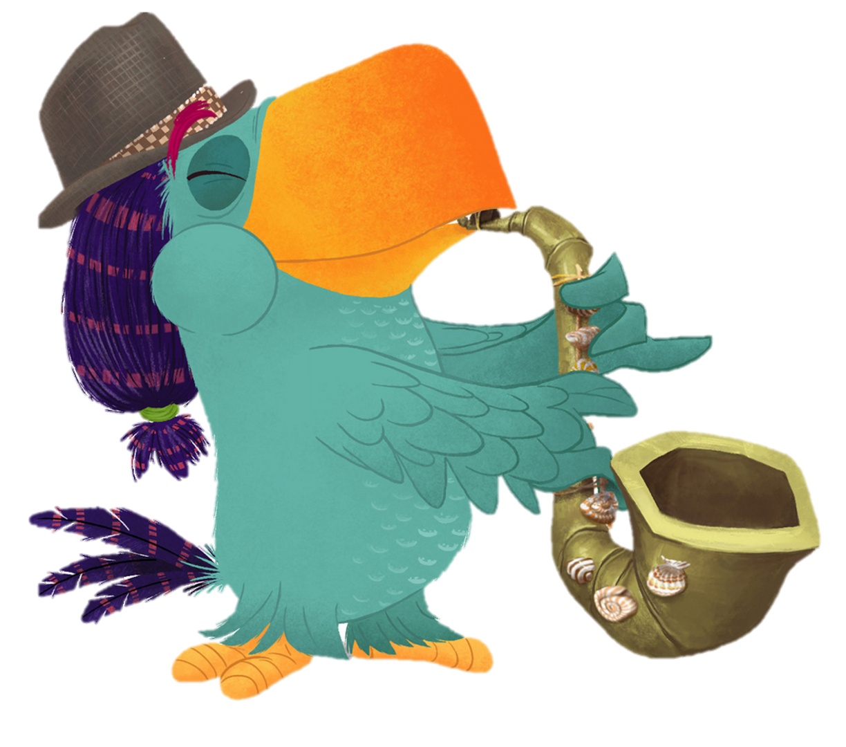 Dane is a toucan who likes to play the saxophone and hangout with his friends.