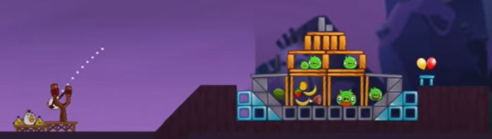 Bomb the horizontal stone plank on the left side with the first Matilda. Lob the first Chuck and blast through the wooden blocks to pop the Foreman Pig in the middle of the level. With a similar shot, lob the second Matilda into the gap where the Foreman Pig was, bombing as late as possible.
