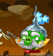 Prince Porky was about to attack the Birds, but he was afraid as he was too small and weak for them. And so, he calls WizPig again. WizPig made Prince Porky bigger than ever - the birds were very crossed.