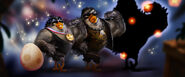 In his trailer, he appears in his Improved Combo Explosion Evolution. The screen focuses on his face and he then screams. The screen then reveals that he is holding a pig next to a chipper. He throws the pig into it and the chipper chips him, launching coins. Dutch then screams happily and a Meet Dutch stamp appears on the screen.