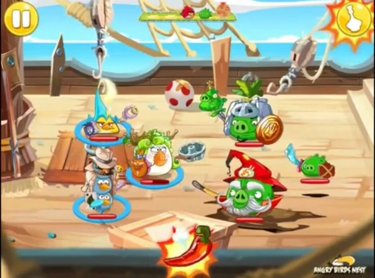 Choose Red in Samurai, Matilda in Druid and Bomb in Cannoneer. In every waves, attack every turn with Red and Bomb, then, heal with Matilda if the birds' health is not full, otherwise, attack with her. When, the Rage Chili is full, do as what we said at the "Warning". Also, protect the birds out of Big Sailor's strong damage by Red's secondary skill. Repeat this over and over until you win the entire battle or lose the entire battle.
