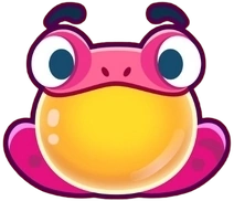 The Frog is fully a pink color, apart from its yellow underbelly. It also has black eyes and subtle purple spots around its body.