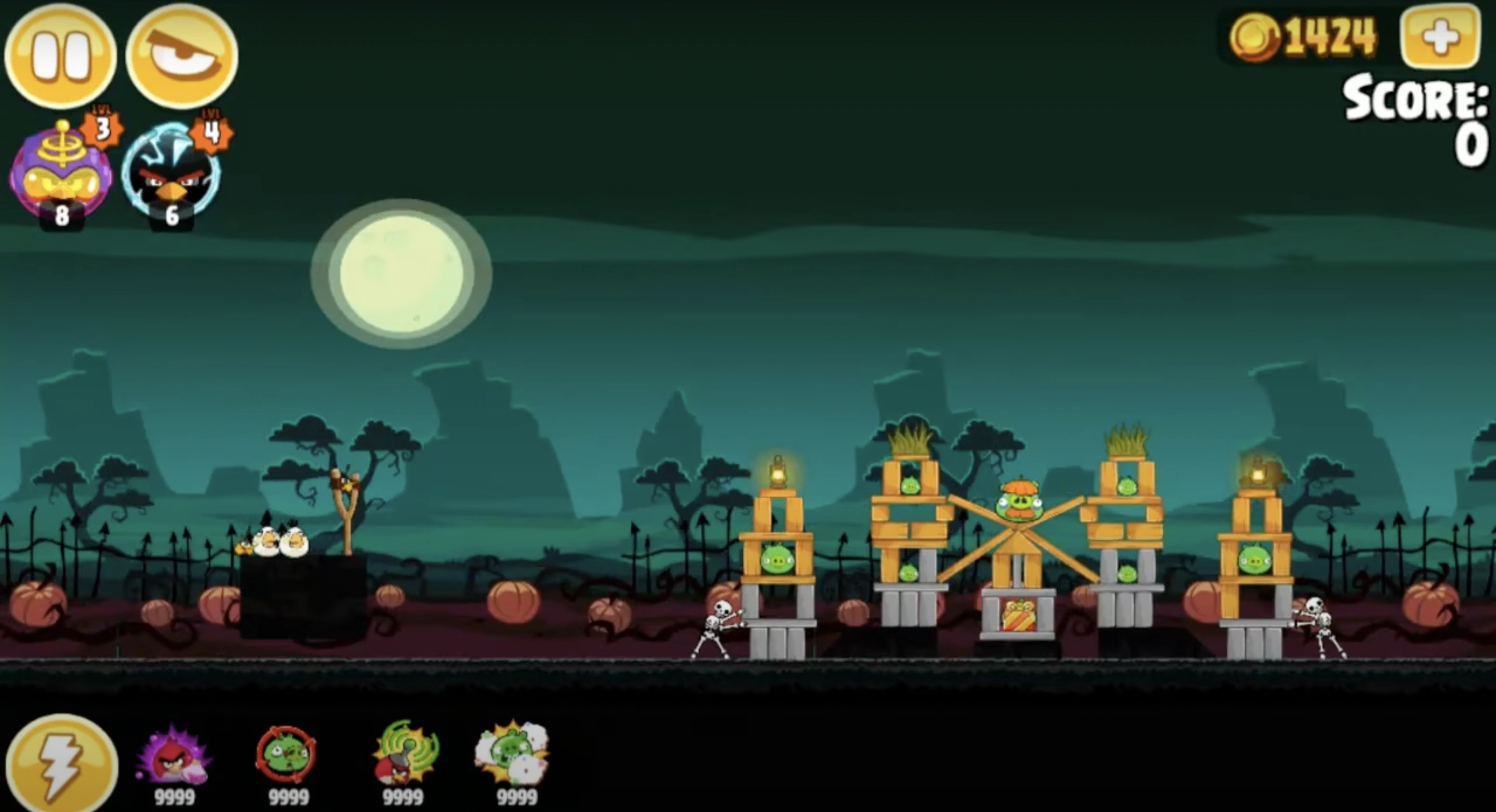 Ham'o'ween 1-13 is the 13th level of Ham'o'ween. the player is supplied with 2 Bubbles's and 2 Matilda's to fend off 3 Large Pigs, 4 Small Pigs, and 1 Foreman Pig.