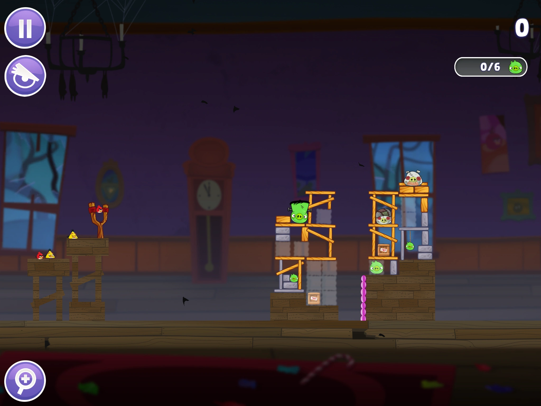 Fire Red directly into “Franken-Pig”. The first tower should collapse to the right. Launch Chuck towards the TNT box in the second tower. Use the last two birds if necessary to destroy the remaining pigs.