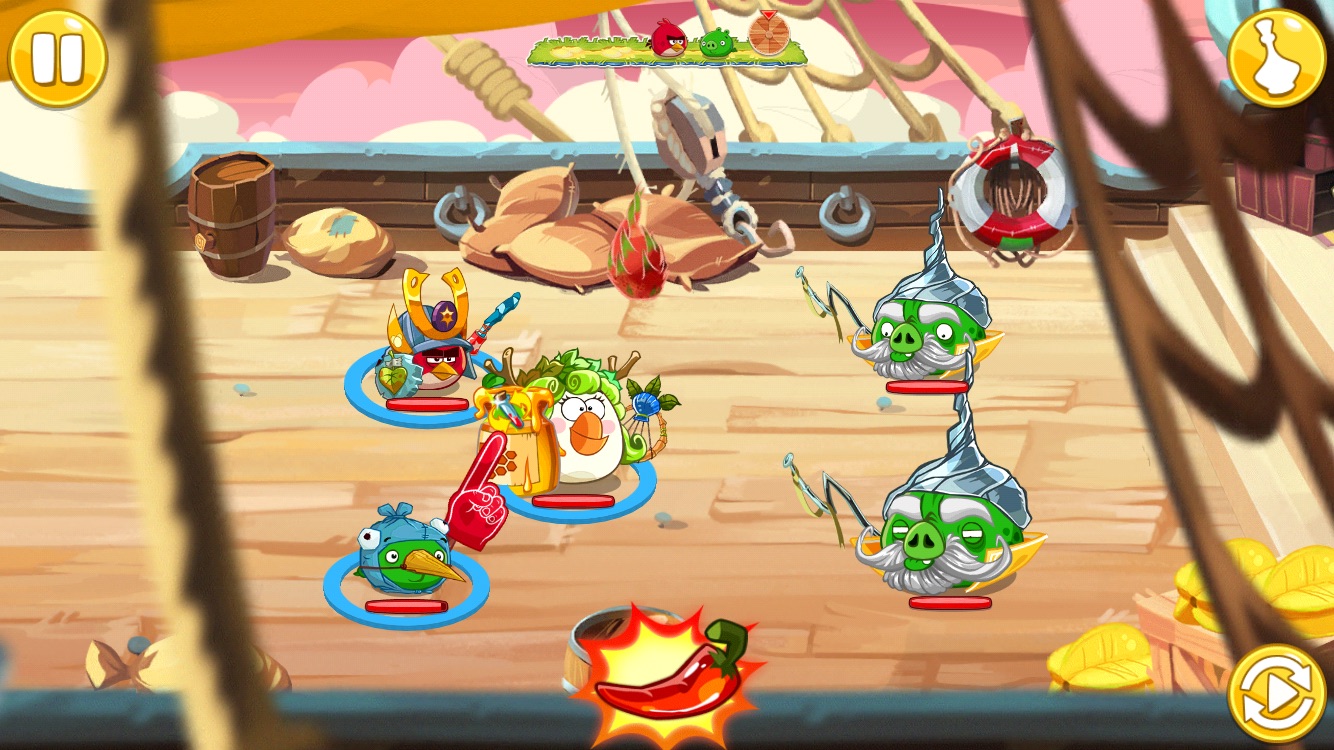 Choose Red in Samurai, Matilda in Druid and Piggy McCool's Merchant Pig. In every waves, attack every turn with Red and Piggy McCool. Then, heal with Matilda if the birds' healths are not full, otherwise, attack with her. When, the Rage Chili is full, do as what we said at the "Warning". Also, protect the birds with Red if a Lightning Pig is almost ready to attack. Repeat this over until you win the entire battle or lose the entire battle