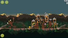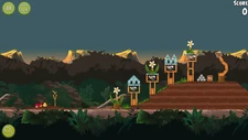 21 | 77,000 | Clearing most of the level requires a lucky shot from one of the Reds to the top half of the first tower above; this will knock down both towers, as well as the two marmosets hanging from below the platforms. The other Red can then strike the leftmost marmoset, and Chuck can clear the two at the far right. |