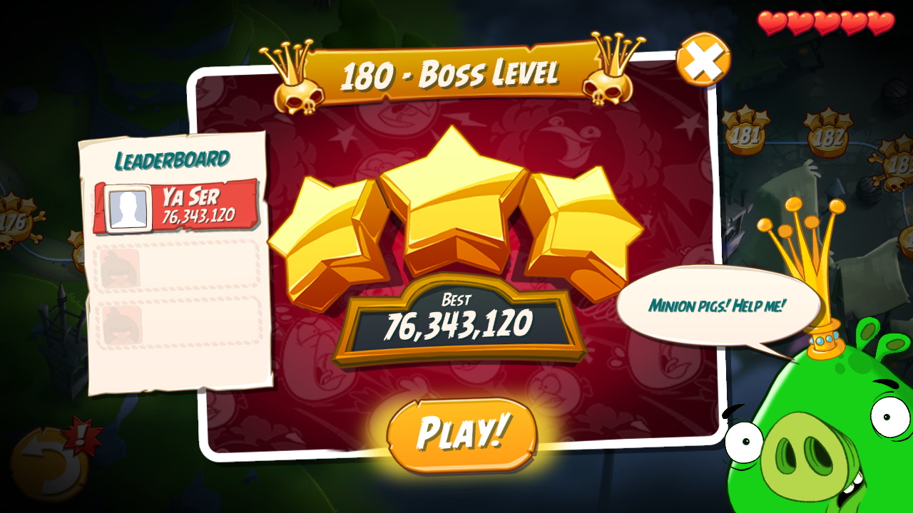 In Angry Birds 2, King Pig stole the eggs once again, though he was constantly pushed by the Angry Birds. Nevertheless, he always managed to survive and get away with it.
