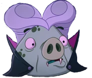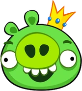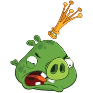 In Angry Birds Stella, King Pig doesn't make a visible appearance in this show, but a character similar to him makes a cameo in The Golden Egg, in the legendary Golden Egg book. Gale replaces the pig's image with hers, thus making her more greedy with power.