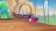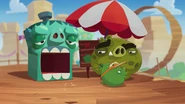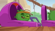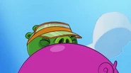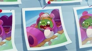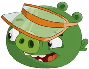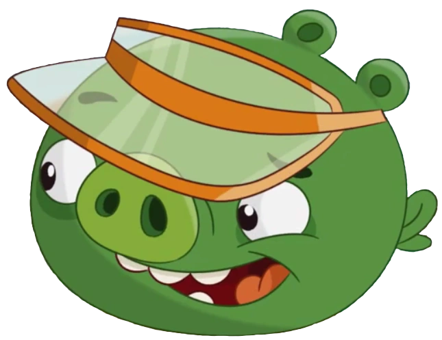 He is standard Minion Pig that wears an orange transparent visor.