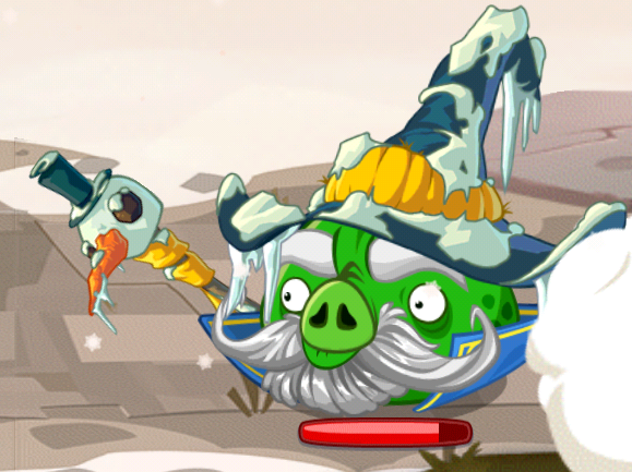 WizPig and Prince Porky has been defeated and this time there's no way for them to run as the birds are standing on their way. The birds then collect the fourth egg, not realizing that WizPig and Prince Porky are escaping from Mountain Pig Castle. Red goes up to the top of the castle and shout, demanding the two pigs to give the fifth egg back, making both WizPig and Prince Porky start to get angry as well.
