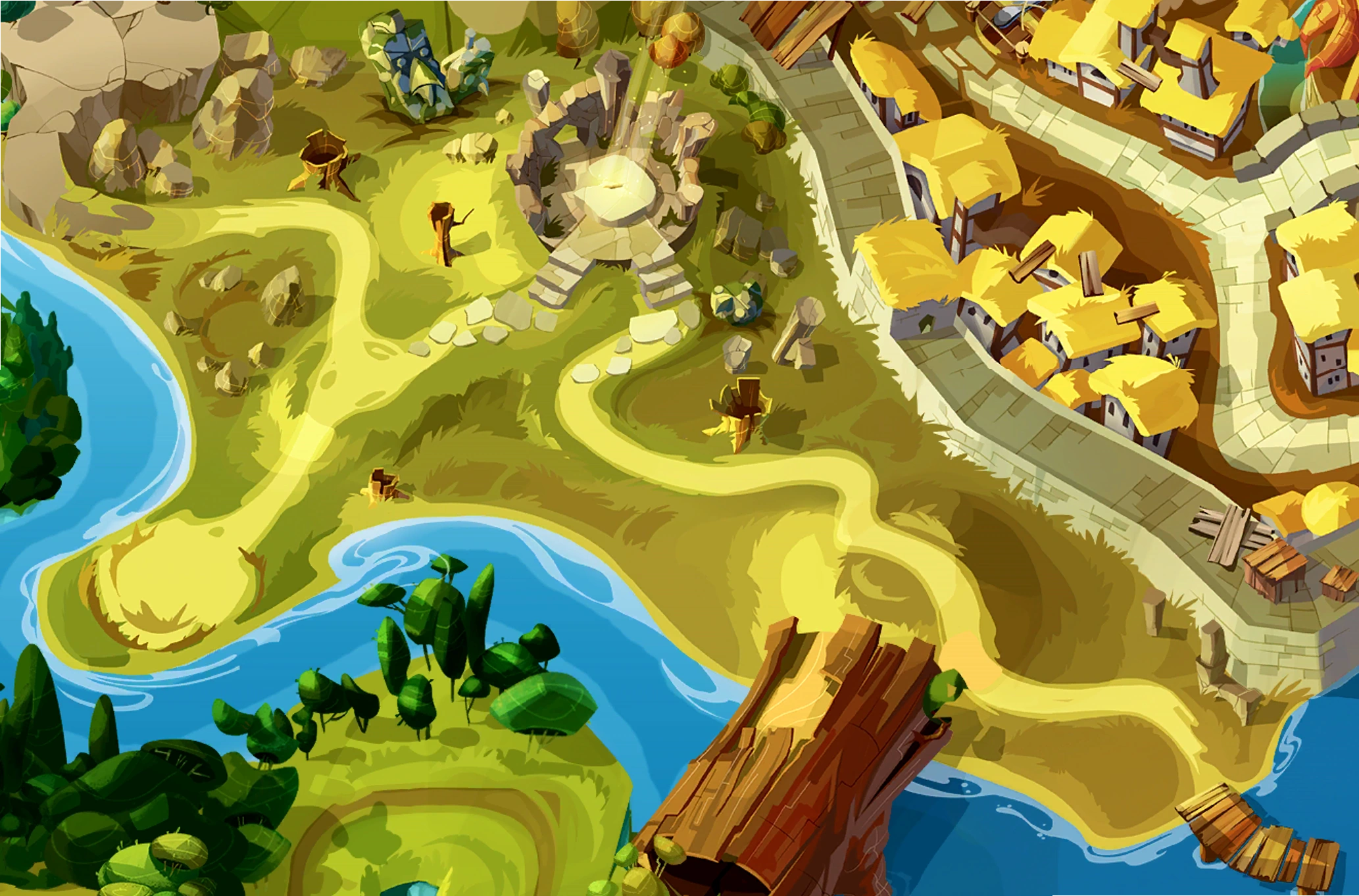 The Old Nesting Barrows are a region on southeastern Piggy Island, at the south of Pig City and at the north of a river that separates it from the northern Cobalt Plateaus; the area's location is thought to mean that there was peace between the birds and pigs on the island long ago.[1] It is a hilly area with yellowish green patches of grass and some trees. At the west of the Barrows, next to the Hog Head Mountain, lie bird-based moai and a monument with an Excalibur-like sword, guarded by a mysterious being called the Sword Spirit.