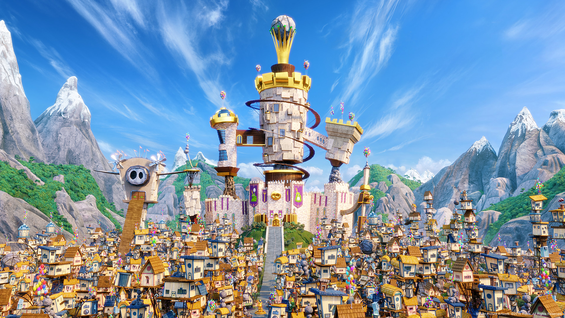 A bigger Pig City debuted in The Angry Birds Movie, where it contained a bunch of houses with a weak type of concrete. There were also shops such as of TNT, fireworks, hot dog, etc. The Pig Palace (Leonard's Castle) in The Angry Birds Movie was much larger, made of bricks and gold. It was destroyed in the Battle of Pig City and reconstructed as well in the second movie. Since then, this has become the definitive design for Pig City as it was used in both Angry Birds Reloaded and Angry Birds 2.
