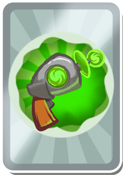The Pig Inflator takes the appearance of a card with a laser blaster with a green accessory on it, surrounded by a green aura.