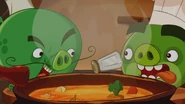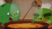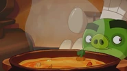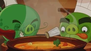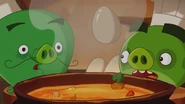 Chef Pig made an elixir that could turn anyone into a Pig. This was used on Red and he became a Pig, he gave the Eggs to Chef Pig and even became assistant chef. The elixir wore off and Red went back to his normal bird self and used the new elixir Chef Pig created to keep him as a pig on Chef Pig turning him into a snail/choo choo train/pig hybrid.